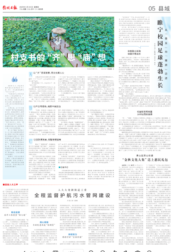 “师傅,您看这一块颜色不均匀,麻烦再补喷一遍,咱得让公路既好看又耐用!”“婶子,这段路正在施工,您绕旁边的路走。”采访当天,恰逢齐庙村修整旅游公路,记者在施工现场见到了忙碌的张敏敏。叮嘱工人注意工程质量、引导村民绕行,她俨然一个“专业监工”。现场施工负责人忍不住称赞:“张书记比我们还较真,有她盯着,工程质量和进度都不用愁!”
