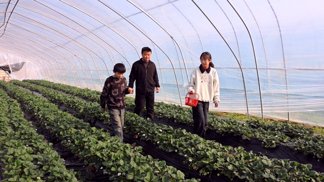 除了“宁玉”,园里还种了“越王”“盐莓一号”,还有受欢迎的白草莓、粉草莓,后续还要加种车厘子、多彩小番茄。游客踪锐笑着说:“刷抖音看到这儿草莓熟了,特意带娃来,尝着又大又甜,下次准备带朋友来。”