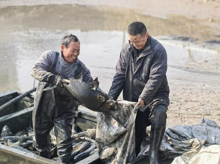 几道身影利落跃入塘中,“捕鱼能手”们披上防水皮裤,脚踩塘泥,有的抖开渔网兜头罩下,有的直接弯腰徒手抓鱼。一条条肥鱼在空中划过银弧,稳稳落进鱼筐。岸上,孩子们拍手叫好,老人们笑得眯起眼:“多少年没见过这阵仗了,这才是过年该有的样子!”