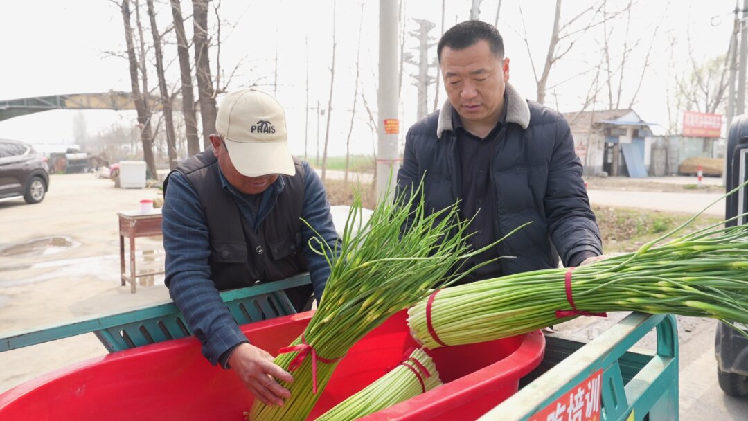 蒜薹经纪人、收购商胡敏介绍道:“我们经纪人主要负责联系种植户、把控蒜薹的品质,再对接外地的收购商和批发市场,让蒜薹更快、更顺畅地销往全国市场,帮农户多卖钱、卖好价钱。”谈及当前蒜薹销售情况,胡敏信心满满:“现在正是春鲜消费旺季,我们这里的蒜薹品质好、货源充足,每天能收购两三千斤,主要发往上海、浙江、山东等地。新鲜的蒜薹很受商超、餐饮饭店的欢迎,市场销路很好,消费者认可度也很高。”